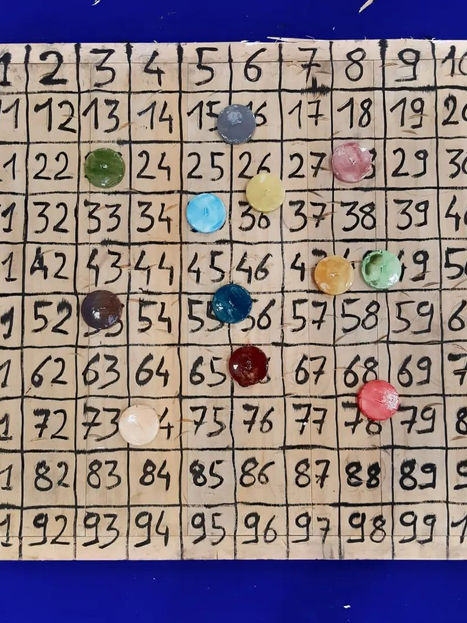 Invitation à exécuter le plus beau des poèmes planche de bois, palets en céramique, liste de mots, poèmes.